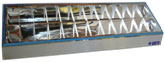 Luminaria fluorescente sobrepuesta de alta eficiencia para tubos T8. Reflector aluminizado doble parabolico. Cuerpo de acero termoesmaltado. |